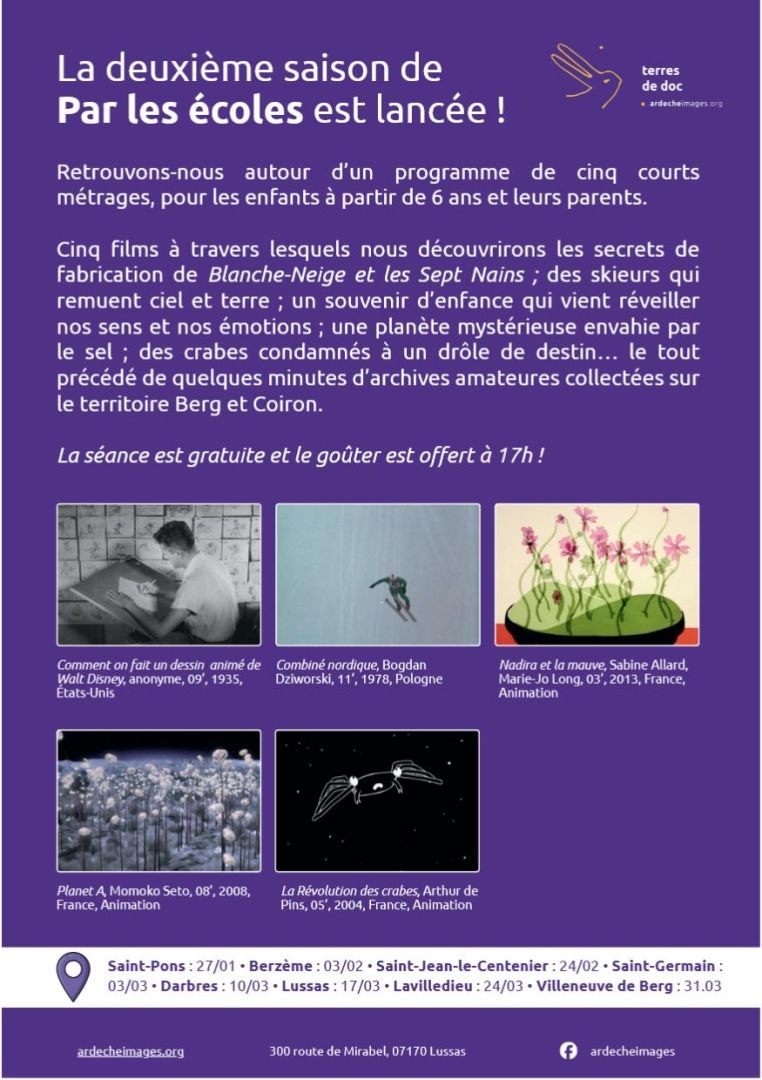 Pour rappel ce sont les 8 villages du territoire qui ont une école, qui nous accueillent dans leurs locaux communaux, pour des temps de partage autour du cinéma pour les petits et les grands. Ardèche Images accompagne chacune de ces projections auprès du public et s'occupe aussi de l'installation technique.