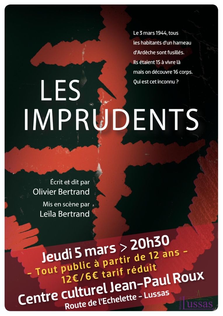 Le 3 mars 1944, tous les habitants du hameau des Crottes à Labastide-de-Virac en Ardèche sont fusillés par des soldats allemands de la 9ème division blindée SS, sous pretexte d'avoir caché des résistants. Quinze habitants vivaient là, mais on retrouve seize corps. Il y a un homme "en trop", un jeune homme, que l'on enterre discrètement, de peur que les SS ne reviennent. Qui est cet inconnu ? Soixante-quinze ans plus tard, Olivier Bertrand mène l'enquête. Accompagné de la projection des traces retrouvées au fil de son périple (dessins, photos, sons, vidéos), il nous plonge dans l’épopée d’un maquis atypique, héroïque et imprudent. Un spectacle qui permet de rendre sensibles, avant discussions en bord de plateau, les questions de l’engagement et de la Résistance, de la transmission, du silence et de la mémoire.